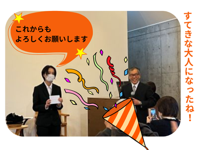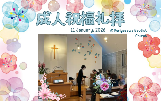 1月11日、3月の気候かと思えるようなあたたかさの中、Sさんの成人祝福礼拝がおこなわれました。あどけない子供のころからSさんを知っている大人たちは、時の流れの速さにただただ驚くばかり。立派な大人に成長した姿の裏には、神さまの支え、そして、ご家族の信仰があることを、この日、確信しました。