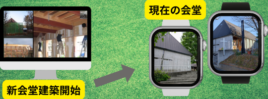 礼拝の中では、スライドショーで、これまでの教会の歴史を振り返りました。現在は、白い十字架が通りに立つ当教会ですが、それより前に、光ヶ丘伝道所(柏市)として伝道は開始されておりました。その後、松戸市小金原地区は山を切り崩して宅地とする工事が始められており、最初に建った建物が当教会でした。1970年のことです。現在の会堂は2006年に完成、松戸景観大賞を受賞しました。神さま、そしてこれまで当教会で信仰を広げてくださった先達の働きに心から感謝します。